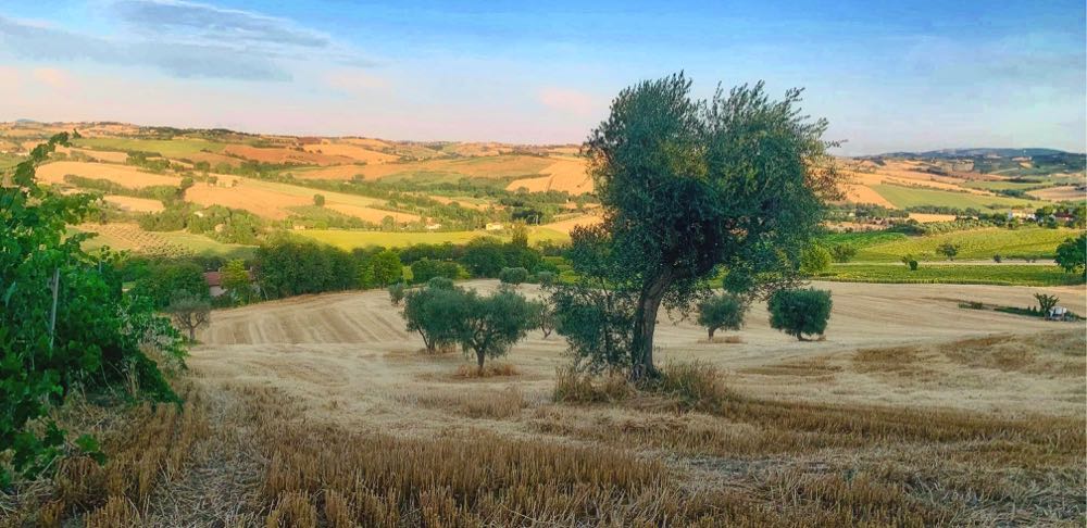 TW Die Landschaft dort ist ganz besonders, weil sie sehr sanfte Hügel hat. Der Hügel, auf dem unser Haus steht, ist ein bisschen höher gelegen als die anderen. Wenn man dort ist, merkt man gleich, dass es ein Kraftort ist - für uns auf jeden Fall. Man guckt von dort aus auf die anderen Hügel und auf jedem steht ein kleines Gehöft. Das sieht unheimlich toll aus. Ein paar Kilometer entfernt befindet sich eine mittelalterliche Stadt, die man von uns aus sehen kann. Es ist ein wahnsinniges Panorama und dort kann man so viel Kraft schöpfen, wie ich es woanders noch nicht erlebt habe. Wir hatten uns viele andere Orte in Italien angeschaut, z. B. einen Ort, von dem aus man die Berge sehen konnte, aber sie waren wie eine Wand. Wenn die Berge nicht bewaldet sind, dann wirkt im Winter eine braun-graue Wand auf einen ein. Das ist doch ein bisschen beklemmend und hier hat man die totale Weite.MW Man kann wirklich sehr weit schauen und bei klarem Wetter sieht man sogar einen Streifen Meer und das macht auch etwas mit dem Körper. Ich habe das Gefühl, dass es etwas öffnet. Durch diese Weite entsteht eine große Leichtigkeit.